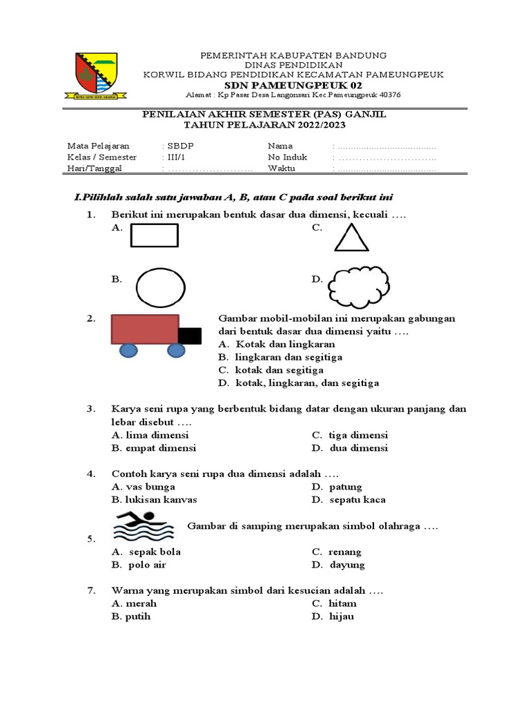 Untuk memastikan proses pembelajaran SBDP berjalan efektif dan pemahaman siswa menjadi lebih mendalam, ketersediaan kumpulan soal yang dirancang secara cermat menjadi sebuah keniscayaan. Kumpulan soal ini tidak hanya berfungsi sebagai alat evaluasi, tetapi juga sebagai sarana latihan yang dapat mengasah kemampuan kognitif, motorik, dan estetika siswa. Artikel ini akan mengupas tuntas mengenai kumpulan soal SBDP kelas 3 MI, mulai dari pentingnya, prinsip penyusunannya, hingga contoh-contoh soal yang dapat dijadikan referensi.